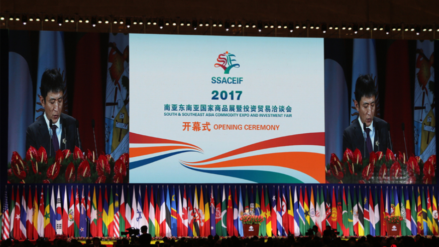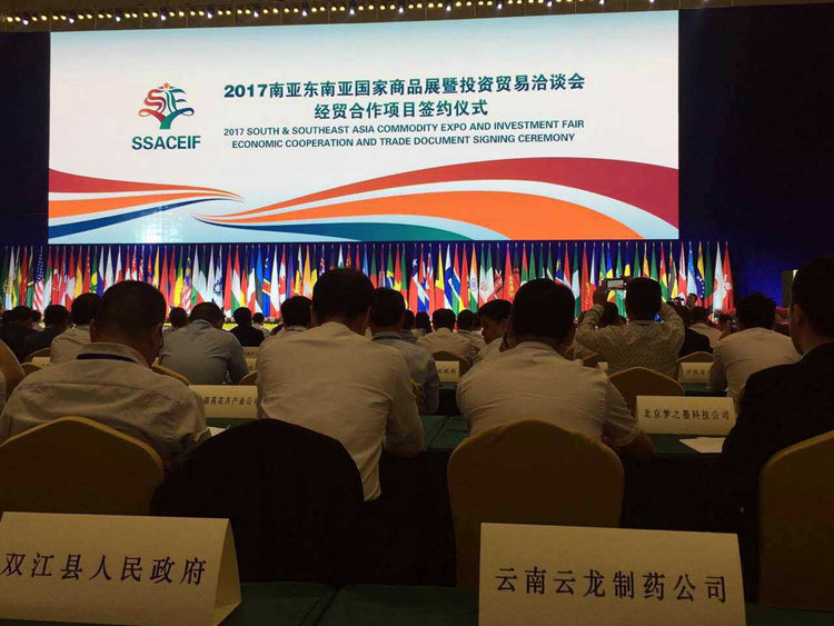 6月13日上午,以“共創新機遇 共謀新發展”為主題的2017年南亞東南亞國家商品展暨投資貿易洽談會經貿合作項目簽約儀式在昆明滇池國際會展中心舉行。集中簽約儀式的擬簽約項目近300個,簽約總金額預計超過4000億元。簽約儀式中,雙江自治縣人民政府與云南云龍制藥股份有限公司簽訂投資合作框架協議書。