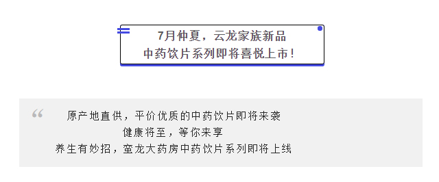 云南云龍制藥股份有限公司旗下蠻龍大藥房以“品質(zhì)為尊”的理念推出全新中藥飲片系列產(chǎn)品。其云龍牌中藥飲片系列產(chǎn)品,根植于“動(dòng)植物王國(guó)”彩云之南。每一味藥材都從地道原產(chǎn)地精挑細(xì)選而來(lái),零污染,無(wú)添加,帶給客戶最本源的用心之選。