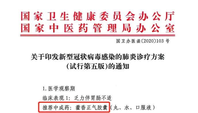 為有效應對新冠肺炎疫情,切實保障人民群眾健康,國家衛健委最新推出《新型冠狀病毒感染的肺炎診療方案(試行第五版)》,云南云龍制藥生產的國藥準字otc甲類藥品藿香正氣膠囊,被該方案列為中醫治療醫學觀察期推薦中藥。