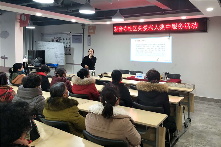 2020年12月31日,昆明市觀音寺社區(qū)于社區(qū)活動室組織了《觀音寺社區(qū)關(guān)愛老年人元旦節(jié)集中服務(wù)活動》。社區(qū)借助此次活動在倡導(dǎo)合理健康的生活方式、提高社區(qū)老年人生活質(zhì)量的同時幫助老年人拓展社交圈、結(jié)識新朋友。旨在讓老年人樹立正確的健康觀念,擁有一個健康多彩的老年生活,也為社區(qū)營造一個尊老、敬老、助老的和諧氛圍。